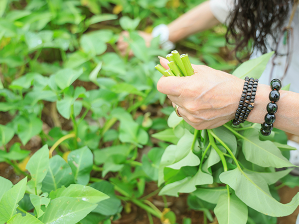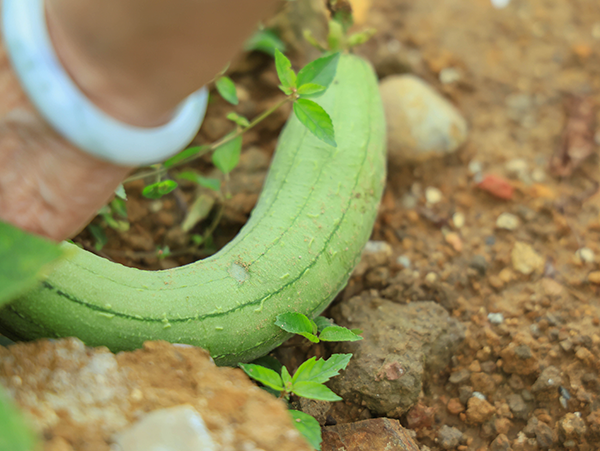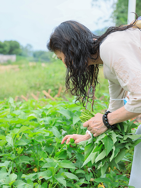 感恩 會惟法師示意我們體驗採摘鮮瓜蔬菜。