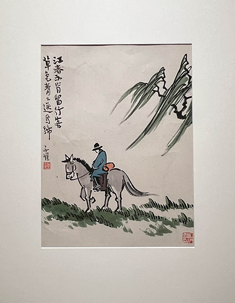 畫中題詞:「江春不肯留行客 草色青青送馬蹄」
