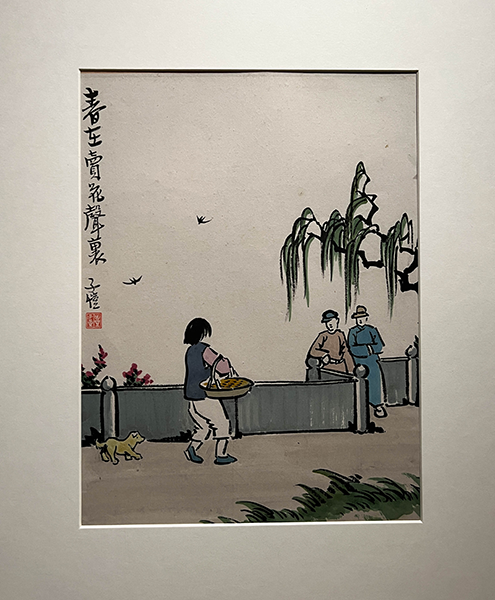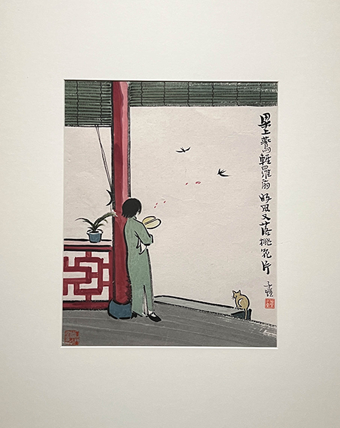 畫中題詞:「梁上燕 輕羅扇 好風又落桃花片」