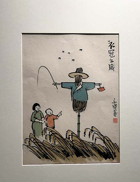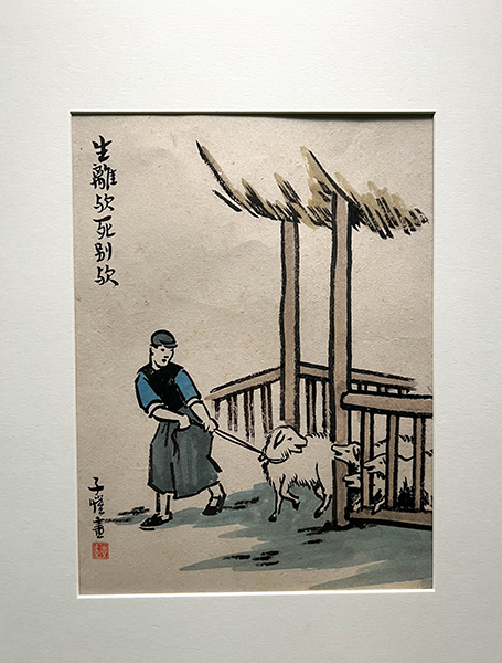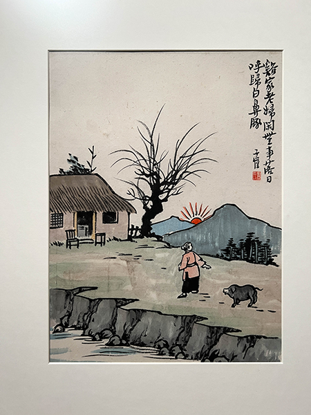 畫中題詞:「谿家老婦閑無事 落日呼歸白鼻豚」