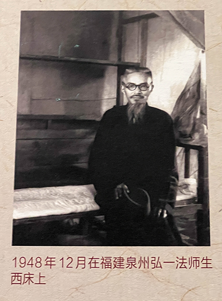 1948年12月在福建泉州弘一法師生西床上。