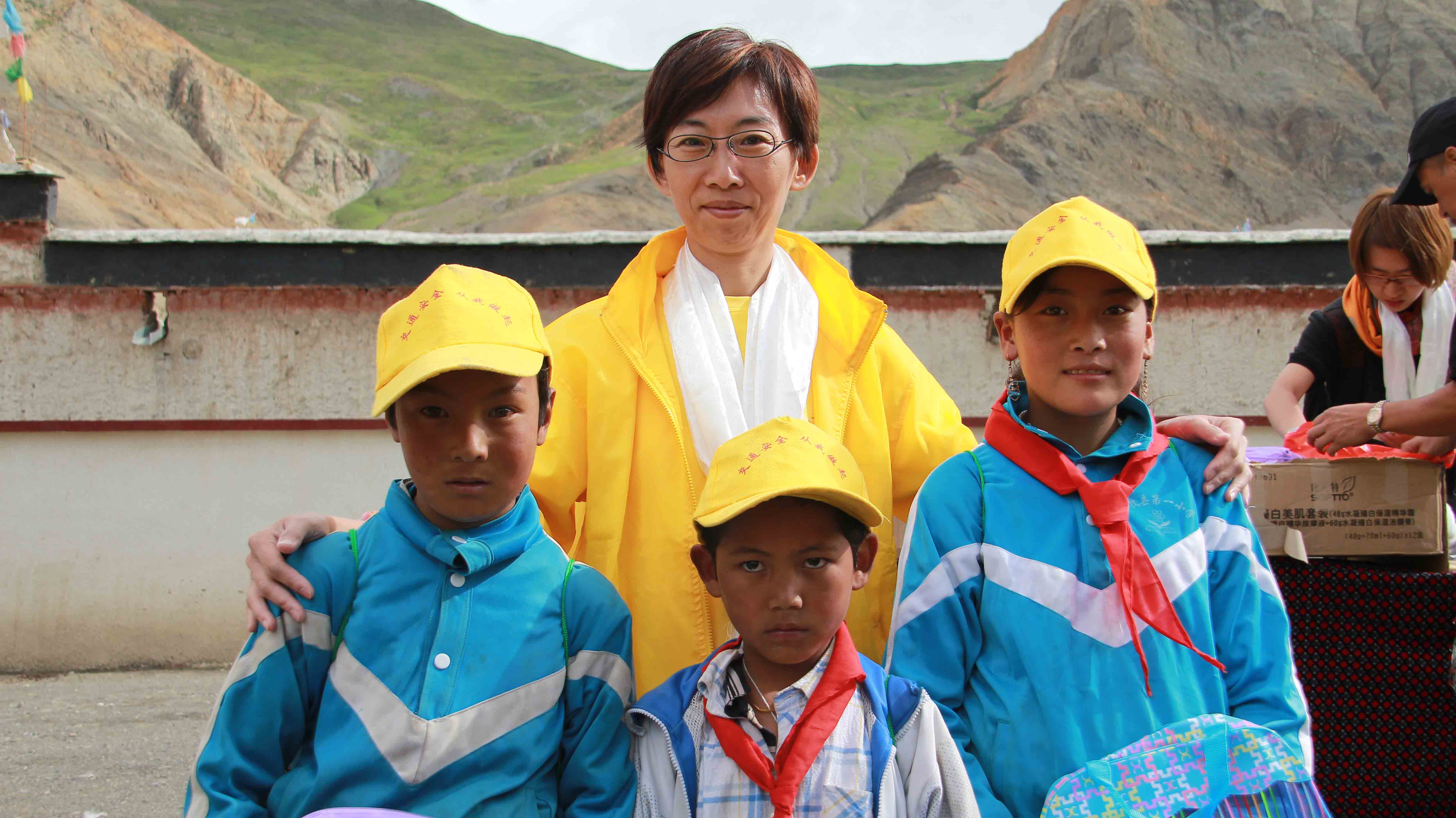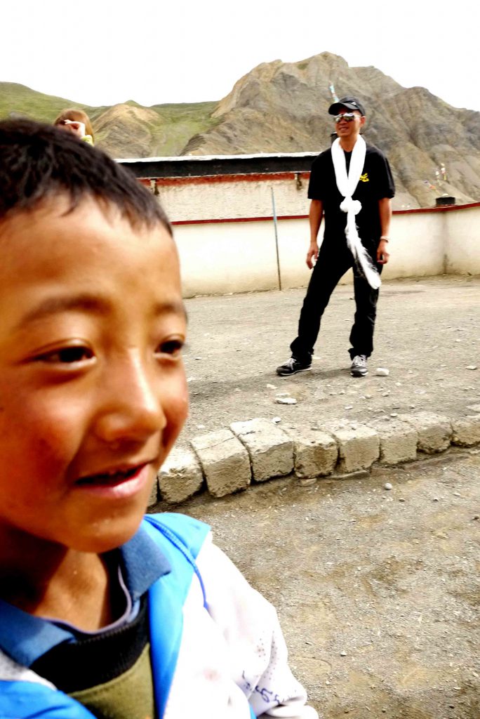 師父替小孩整理好衣領才拍照。感恩 師父!