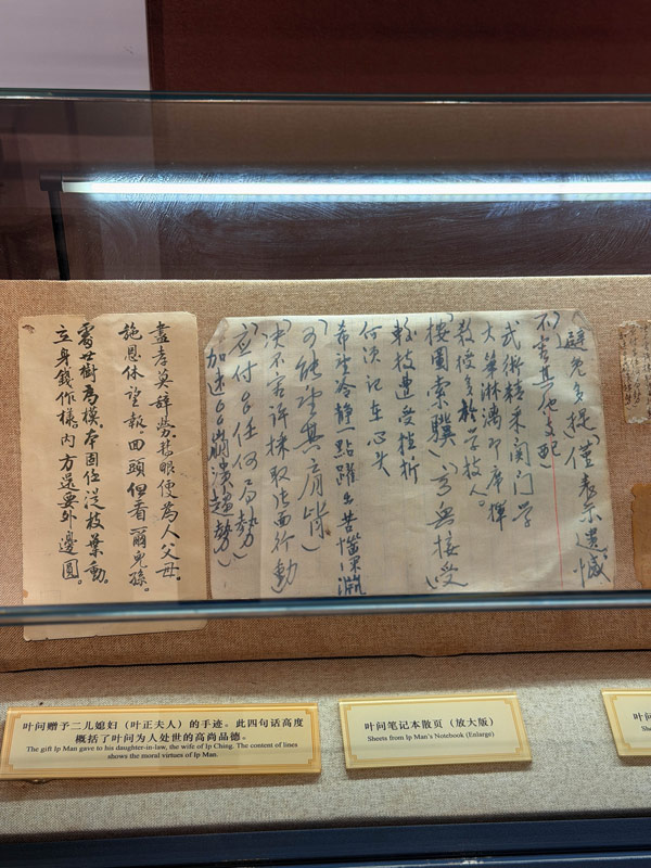 葉問筆記本散頁(右)、葉問贈予二兒媳婦(葉正夫人)的手跡。