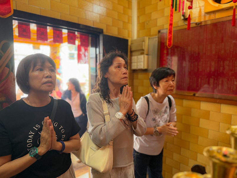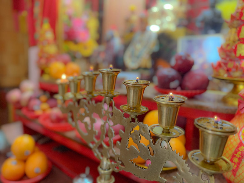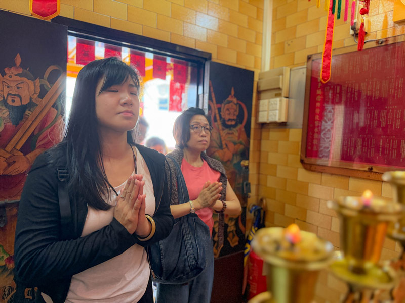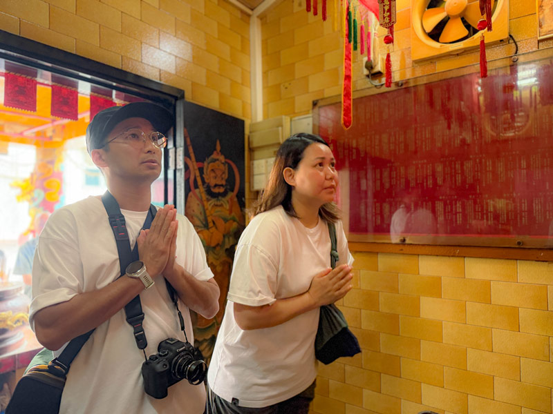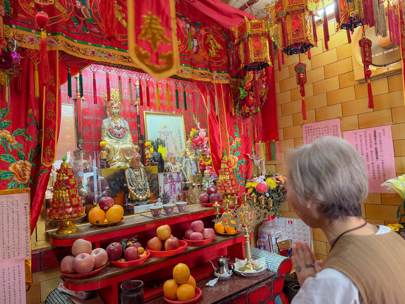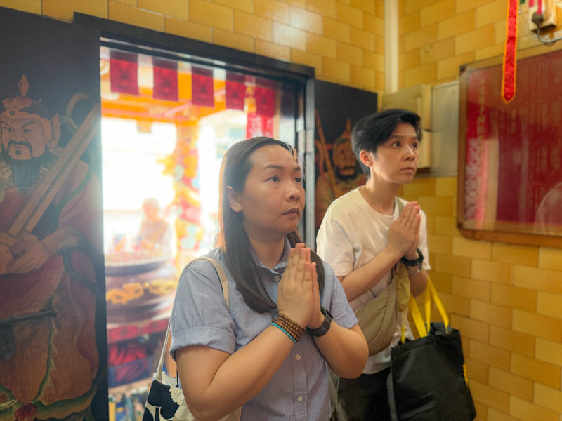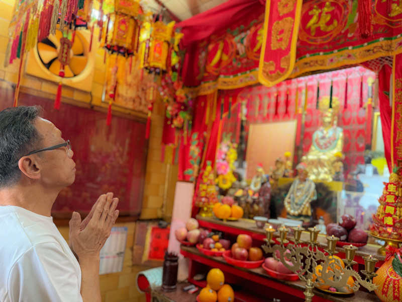 廟內安放著一文一武的 金花娘娘像,旁邊擺放著 關德興先師像。事緣 關德興師傅得 娘娘顯靈,指示他前往坪洲祝賀金花誕;後來 關德興師傅被追封為 護法大將軍,守護著 金花娘娘。