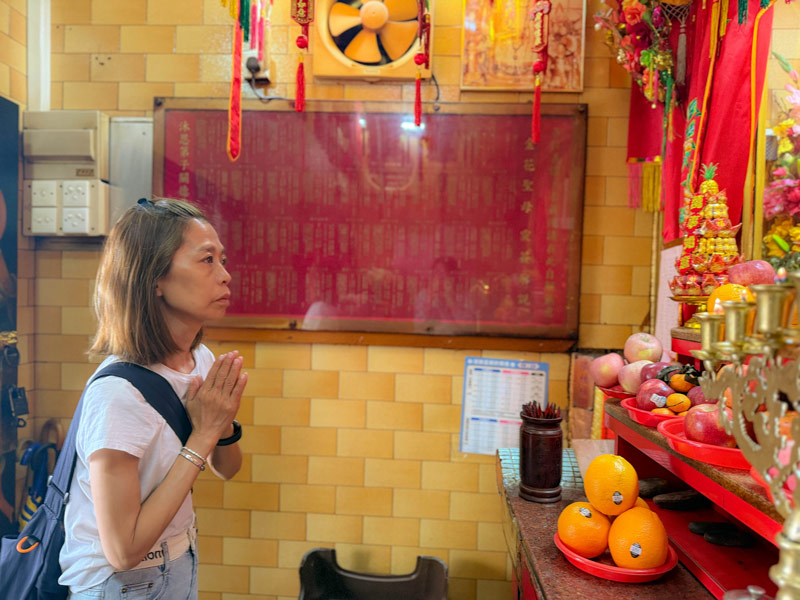 坪洲獨有的金花廟小巧精緻,其由來可上溯至清朝中葉。乾隆二十七年(西元1762年),藥師賴園文,來到坪洲金花廟為其妻許願求藥治病,後終尋獲藥方;為答謝神恩,在此建立金花廟,留存至今。