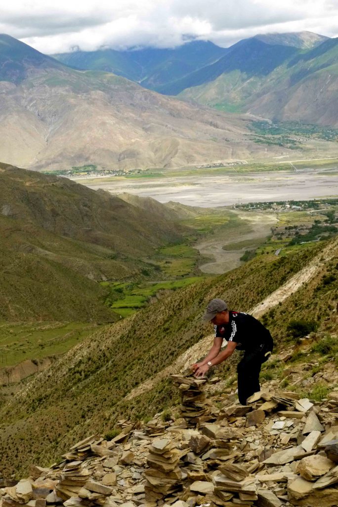 達次(我們的西藏導遊)講解藏人砌瑪尼堆的習俗,砌瑪尼堆一般是用以祈福;瑪尼堆在西藏各地的山間、路口、湖邊,幾乎都可看到,一旦瑪尼堆被砌好,便不會有別人破壞甚至觸碰它。