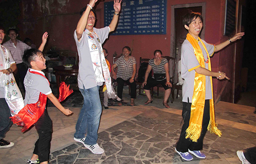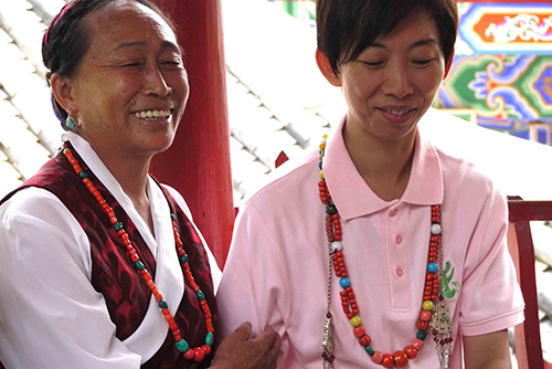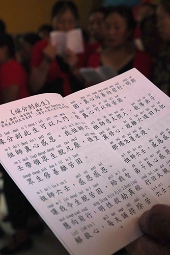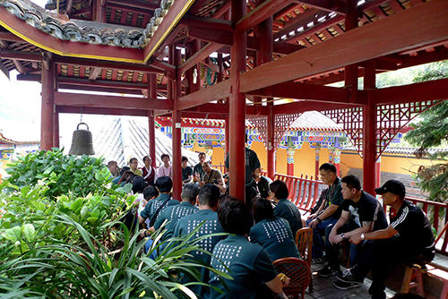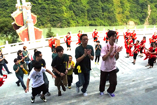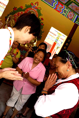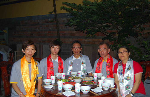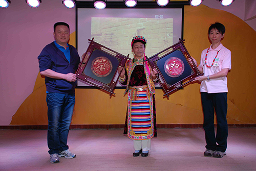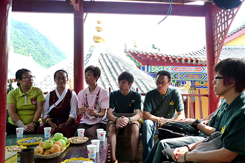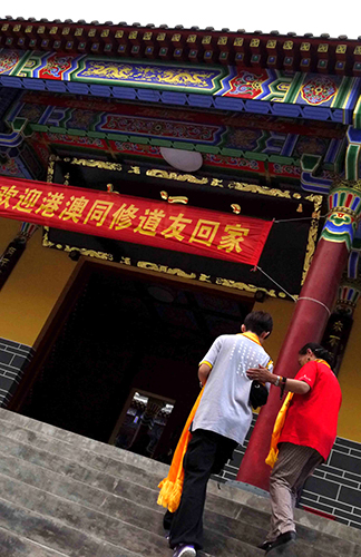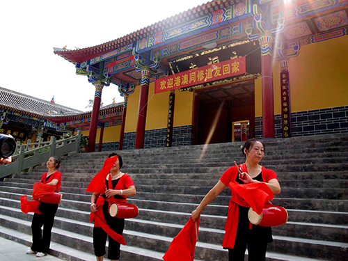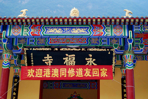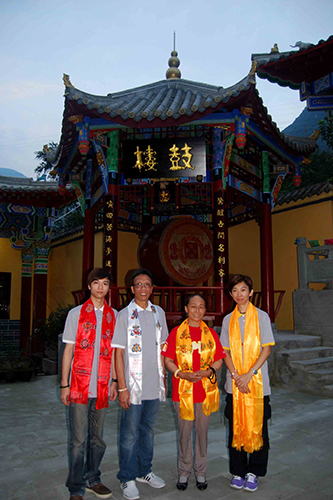 師父與新加坡金鳳廟副主席李先生去年(2011年)送給何師父的「和」及「家」掛飾,何師父用此作為啟發並裝置於新建的鼓樓與鐘樓前。