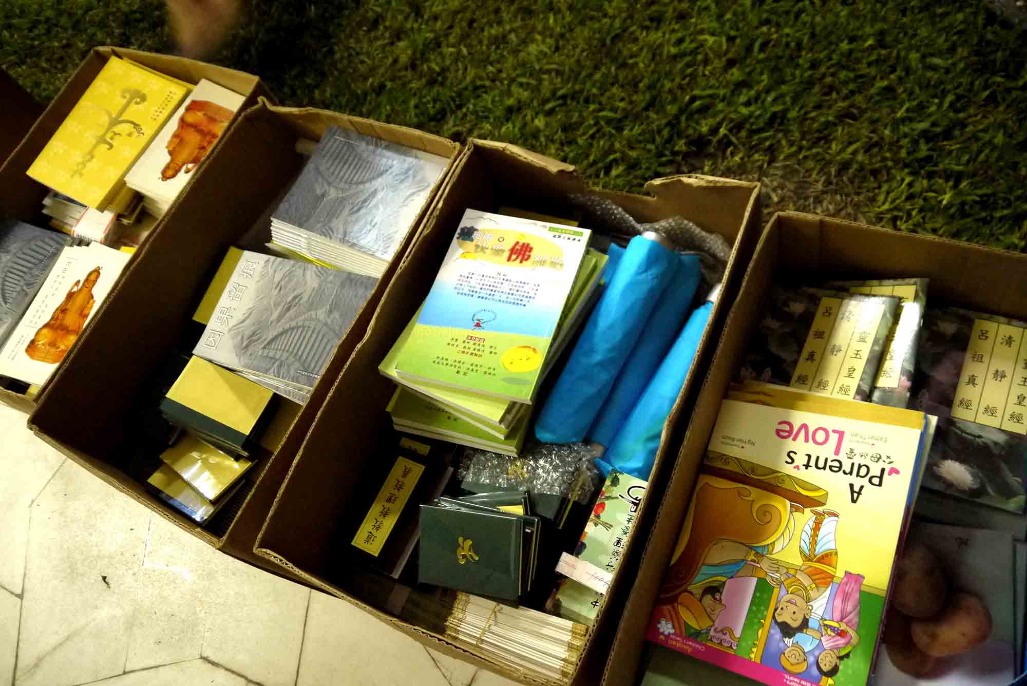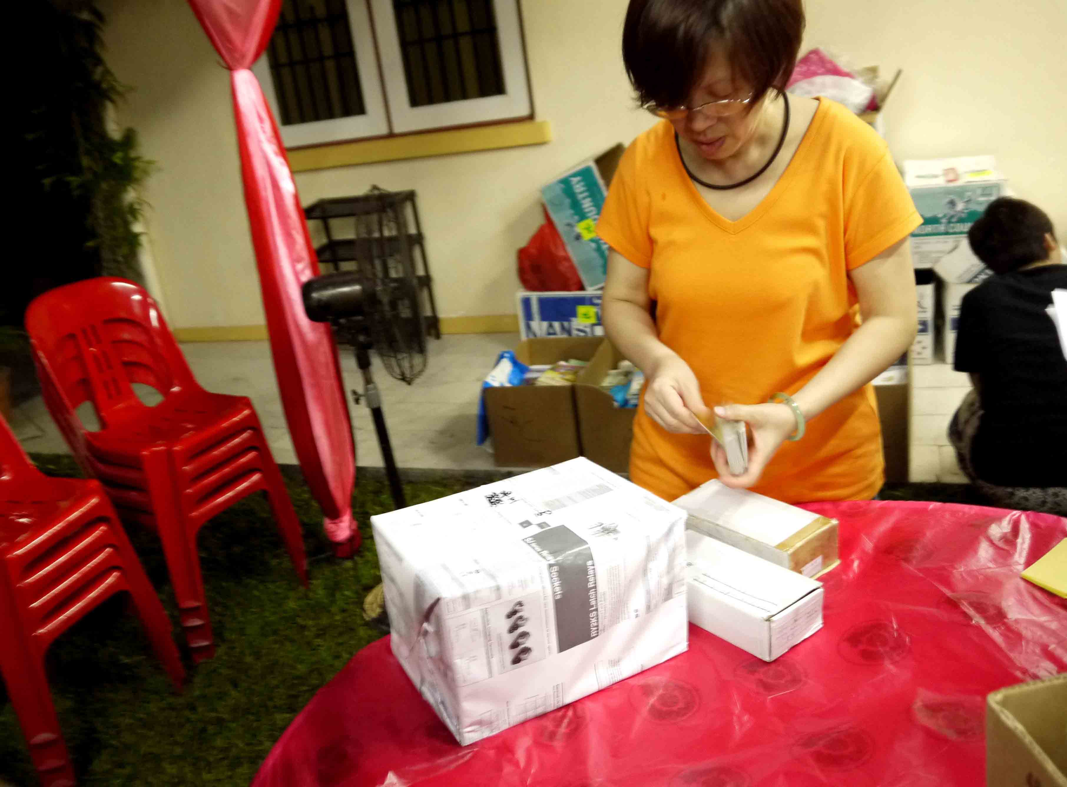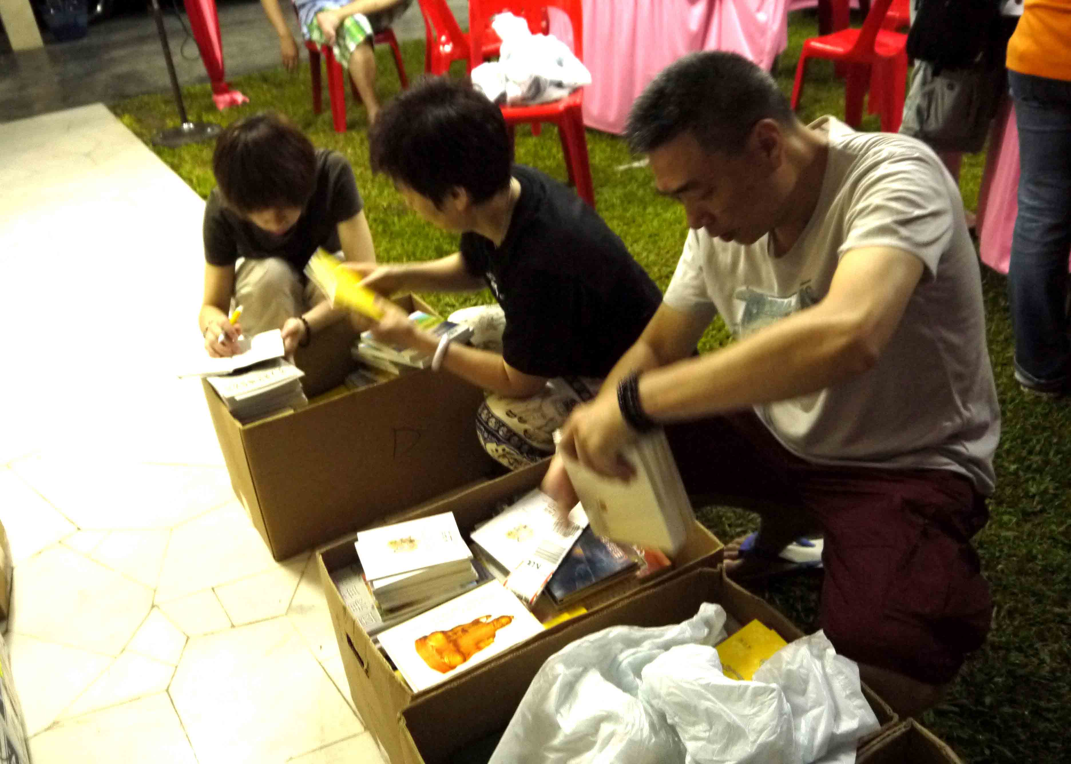 karaoke完畢,大家立即投入工作,點算翌日探訪用以結緣的經書。