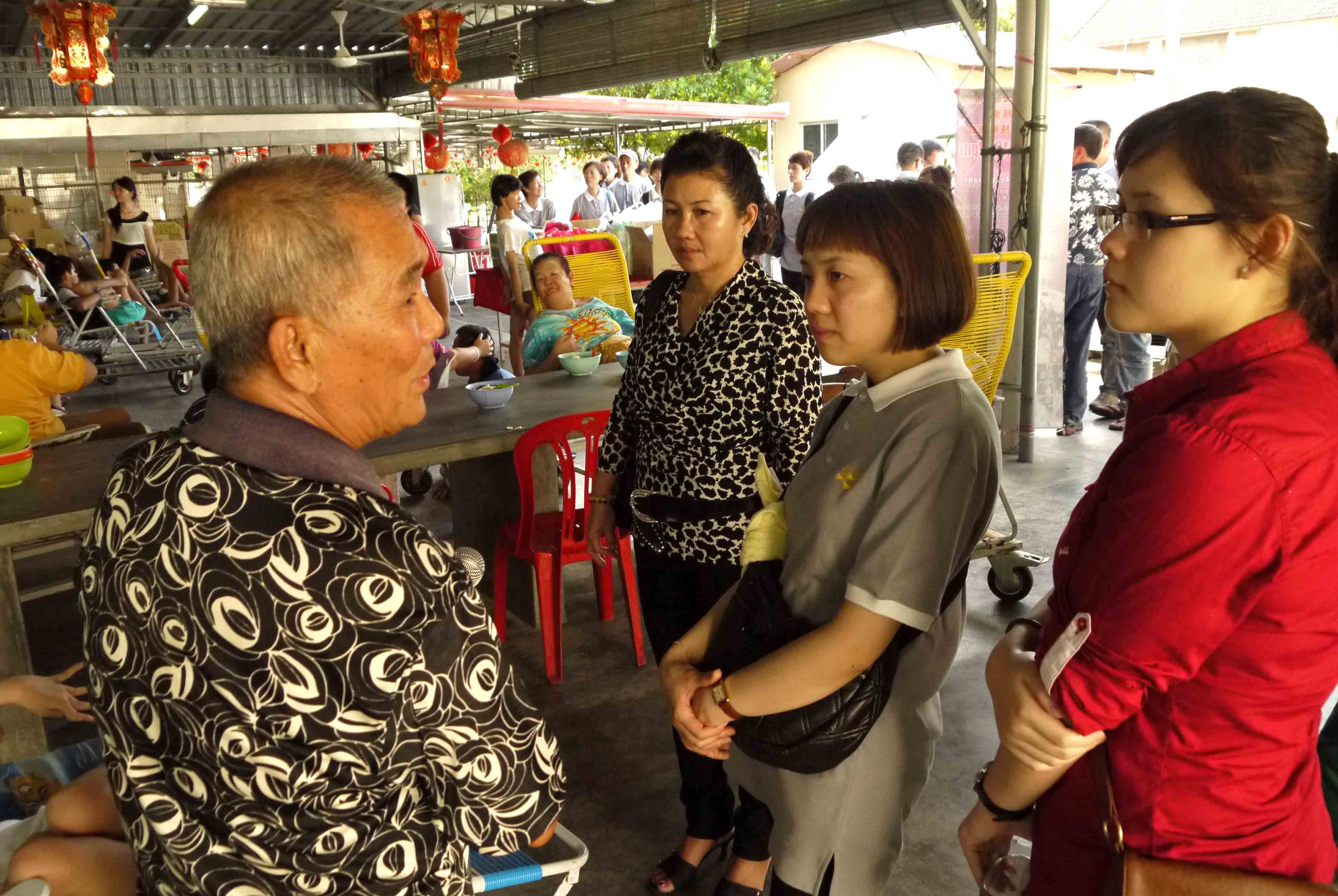 林太太和女兒(紅衫)、媳婦懷住沉重的心情,聽着王先生講解。