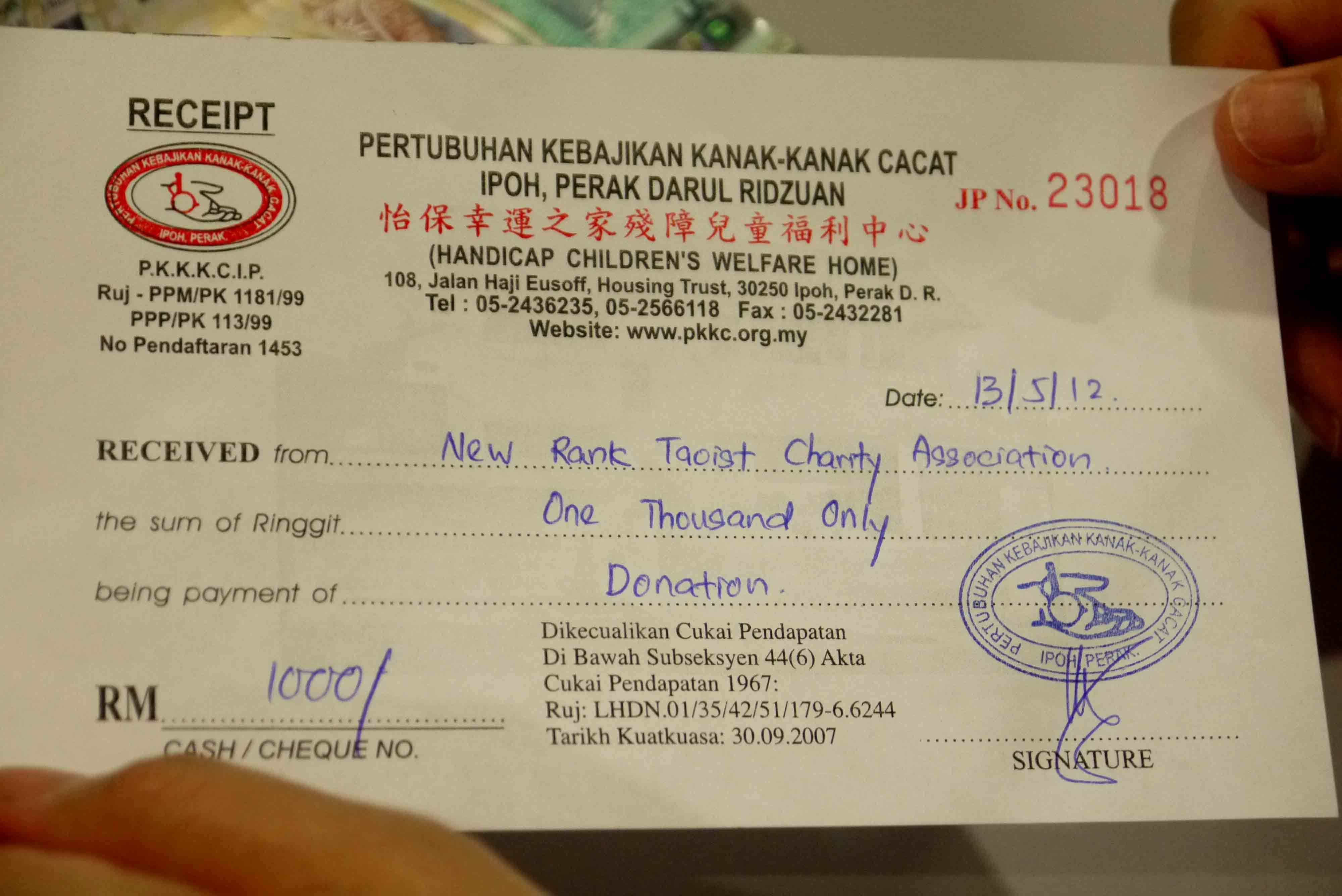 師父將小小的心意功德善款捐贈幸運之家。