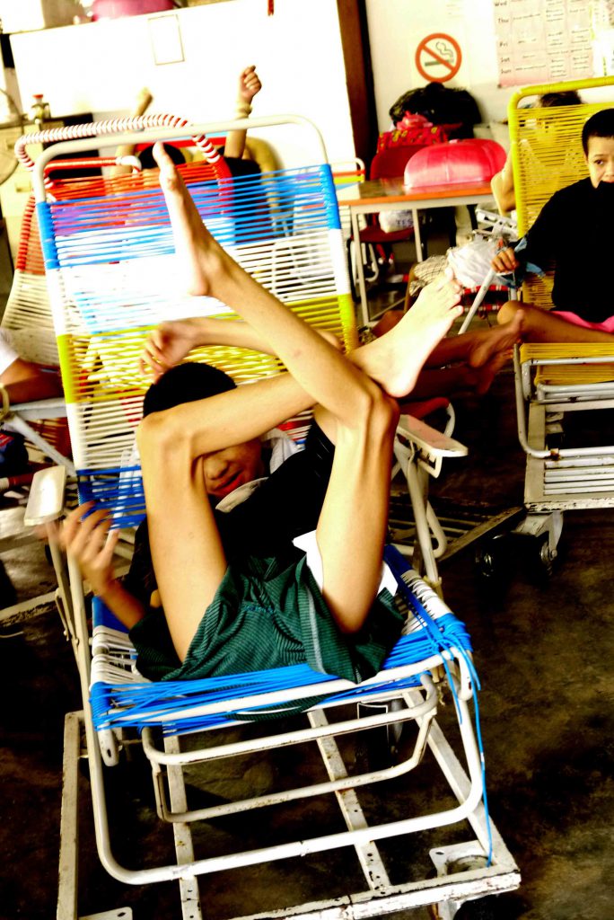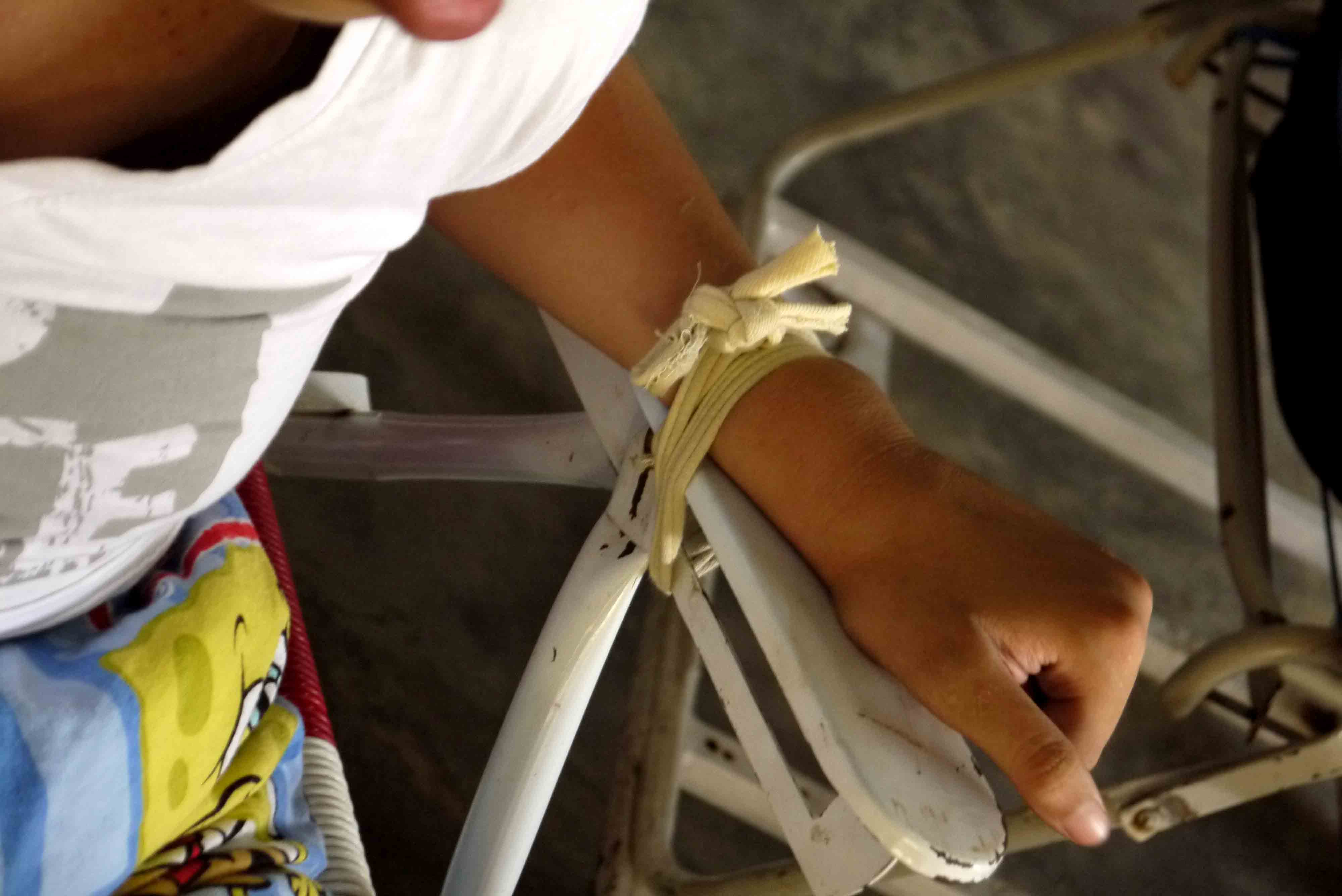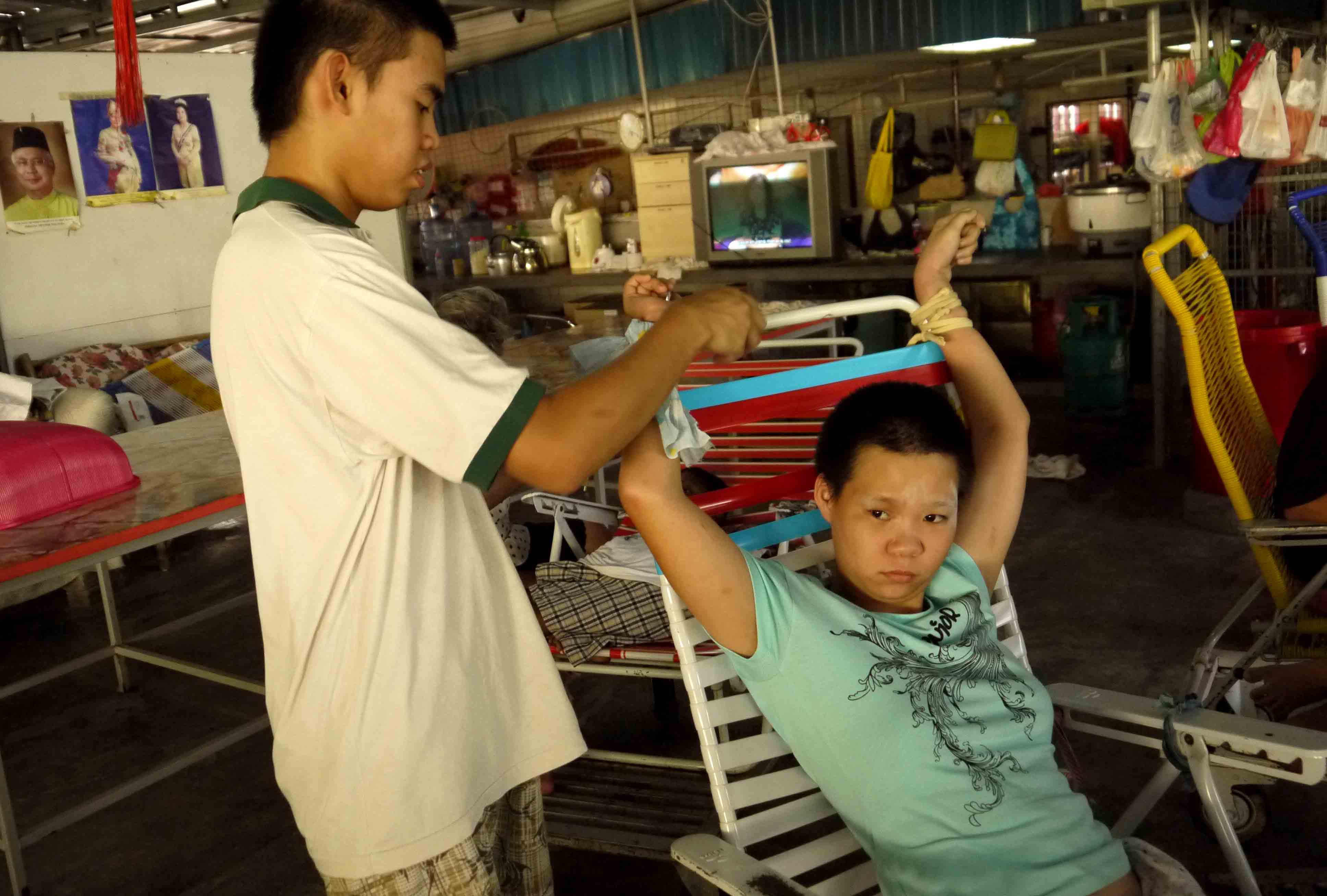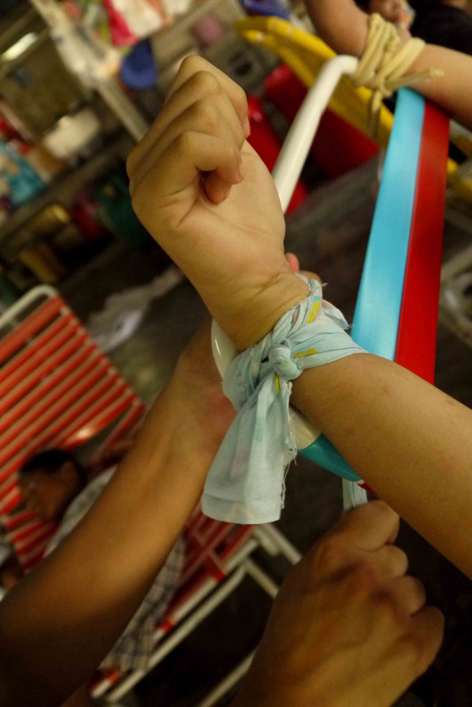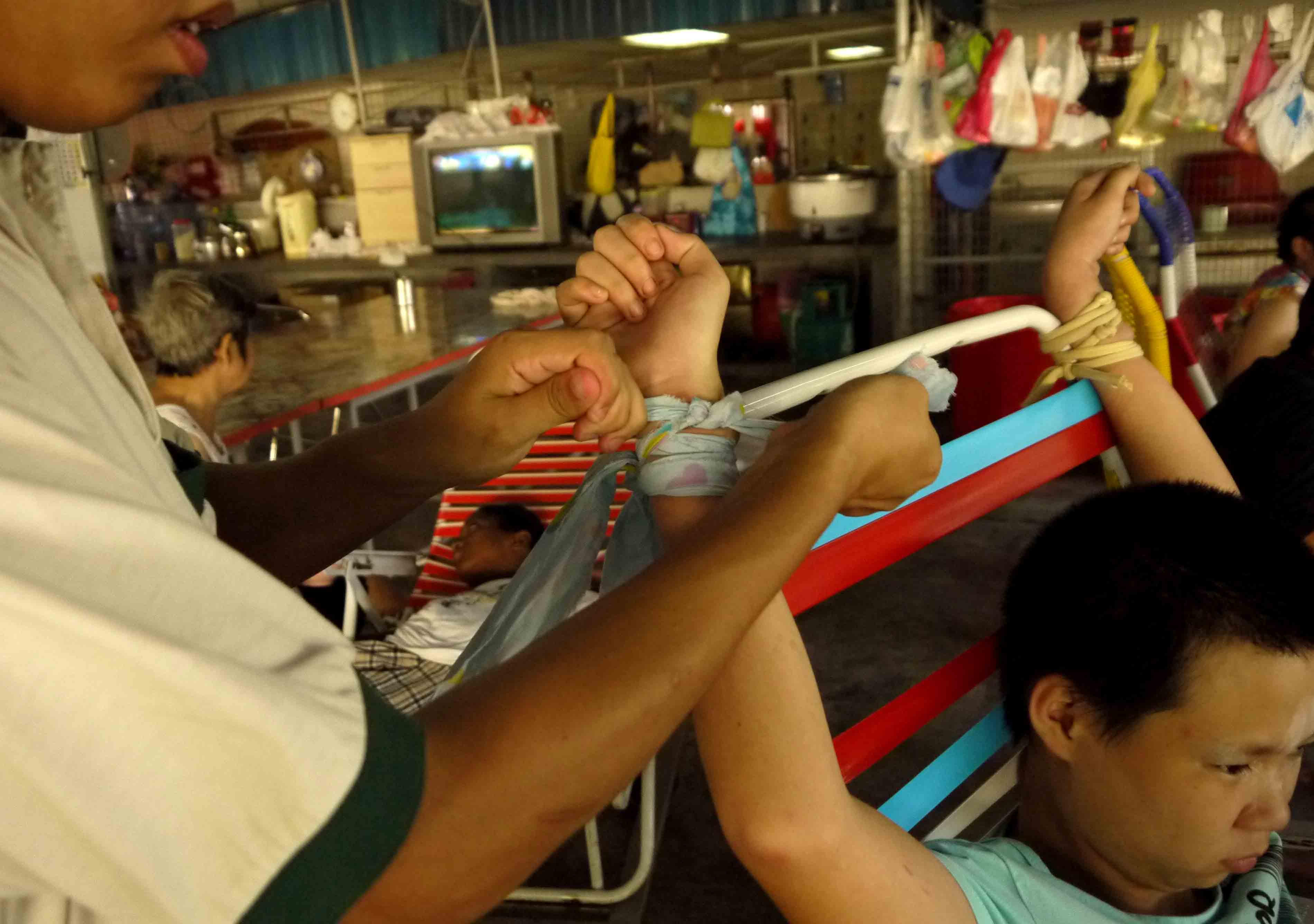 有部份院友要被強行綁住雙手,詢問之下,院方說這是由於個別院友有暴力傾向,或不時自行脫光自己衣服的緣故。