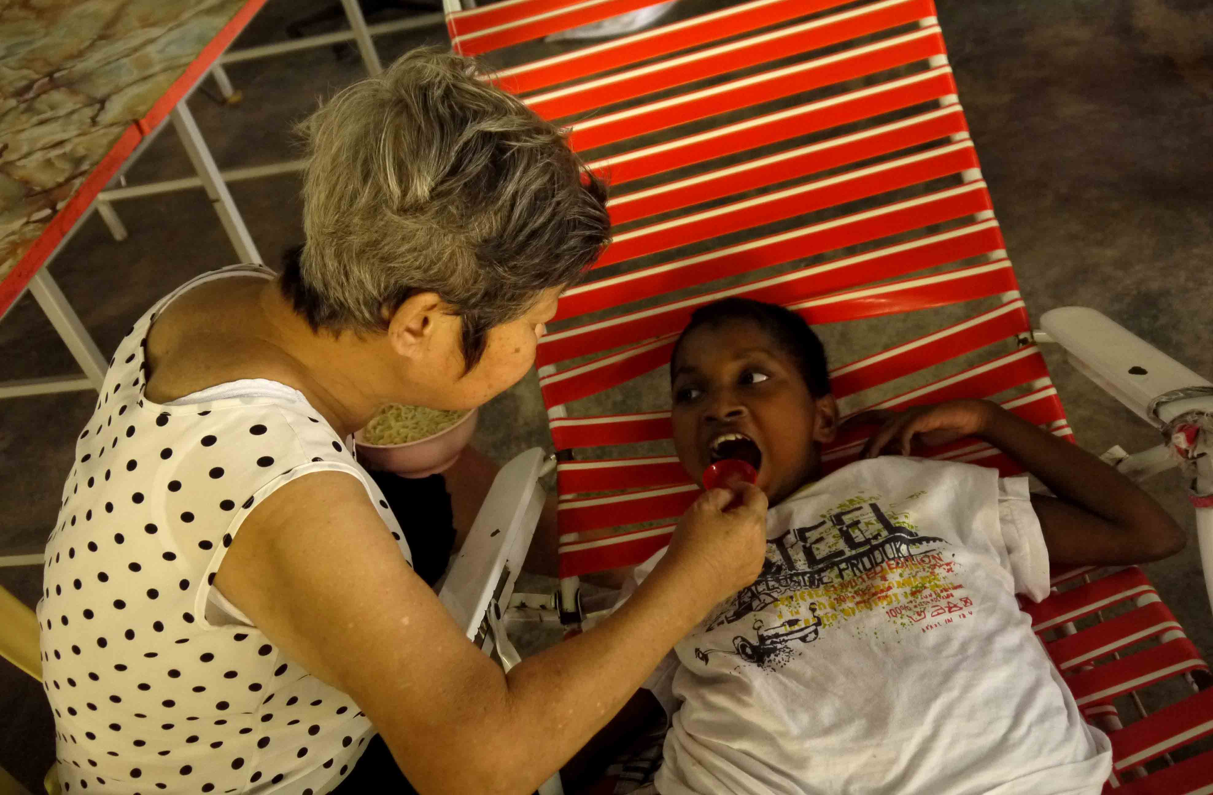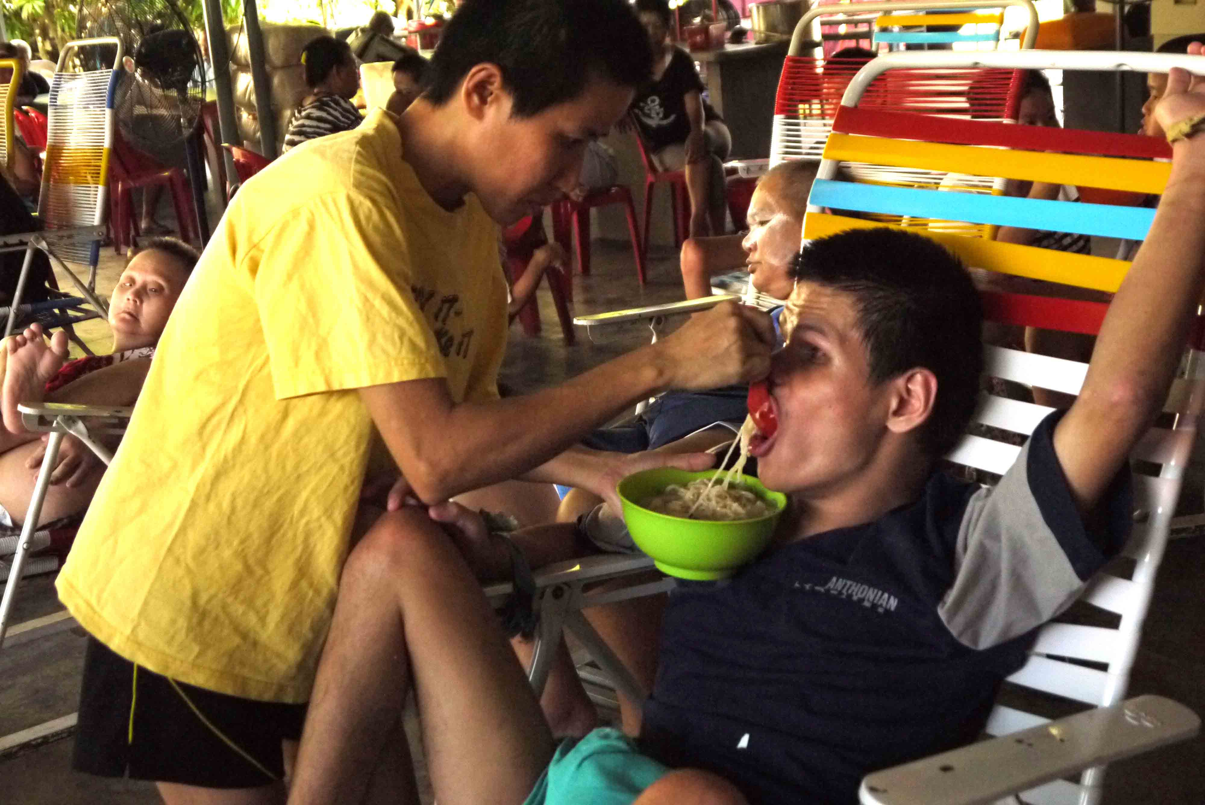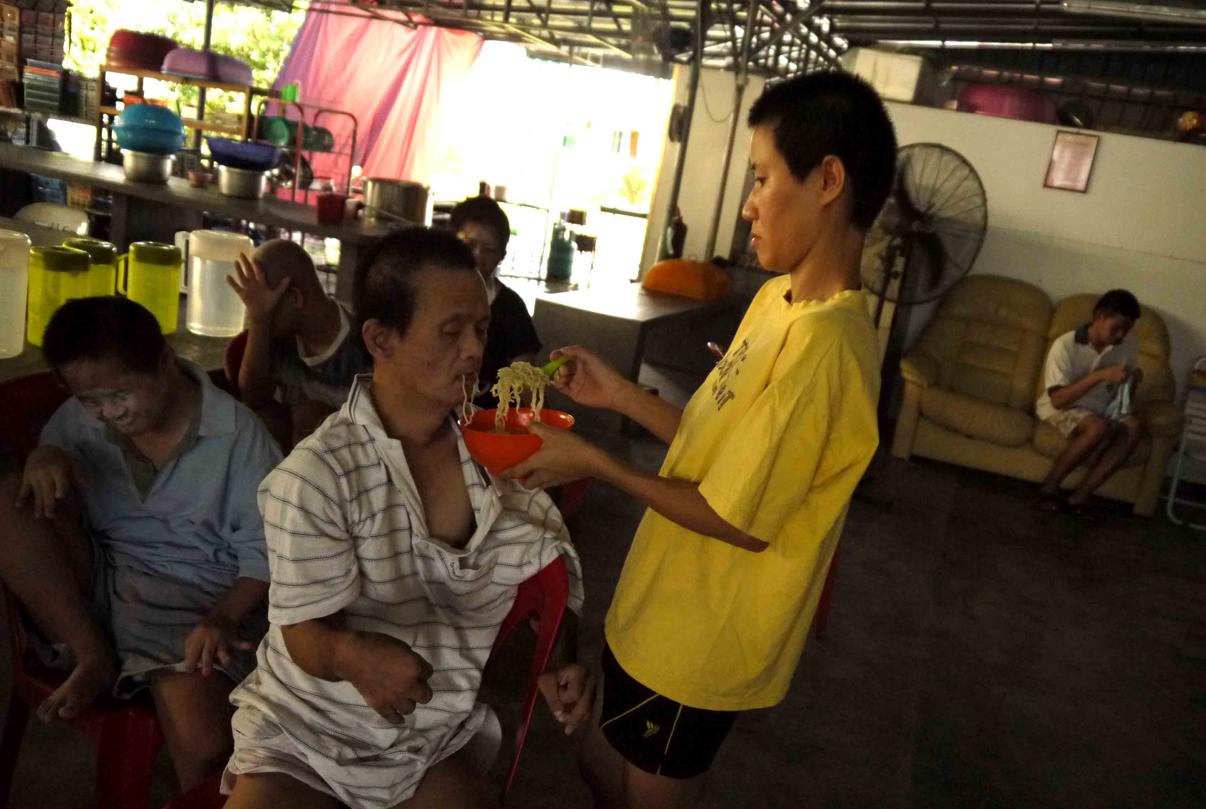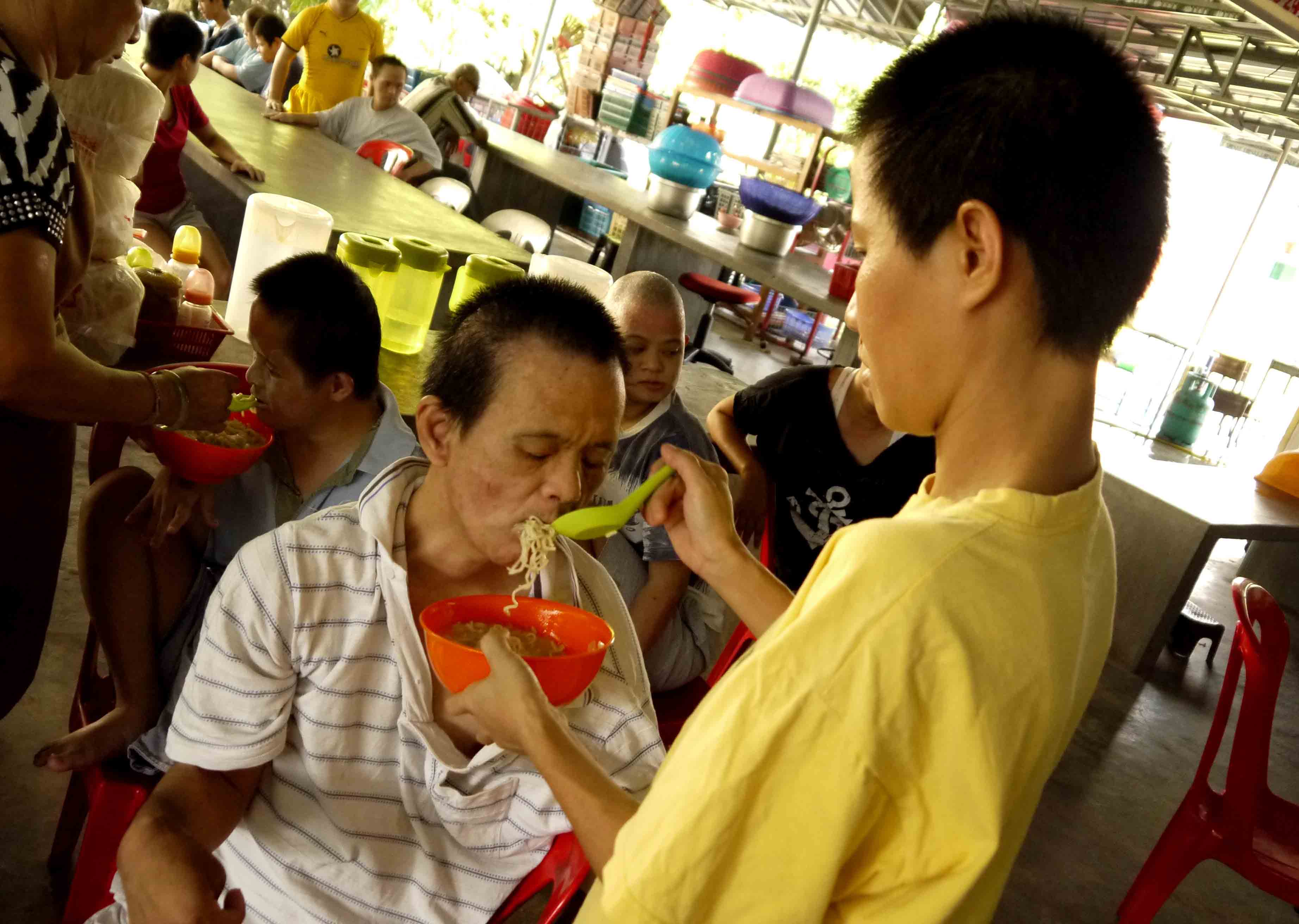 輕度智障的院友幫忙照顧問題嚴重的院友。