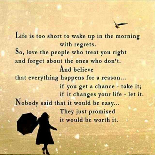 中譯:生命短暫,愛關心你的人, 寬恕誤解你的人,相信因果,隨緣生活。