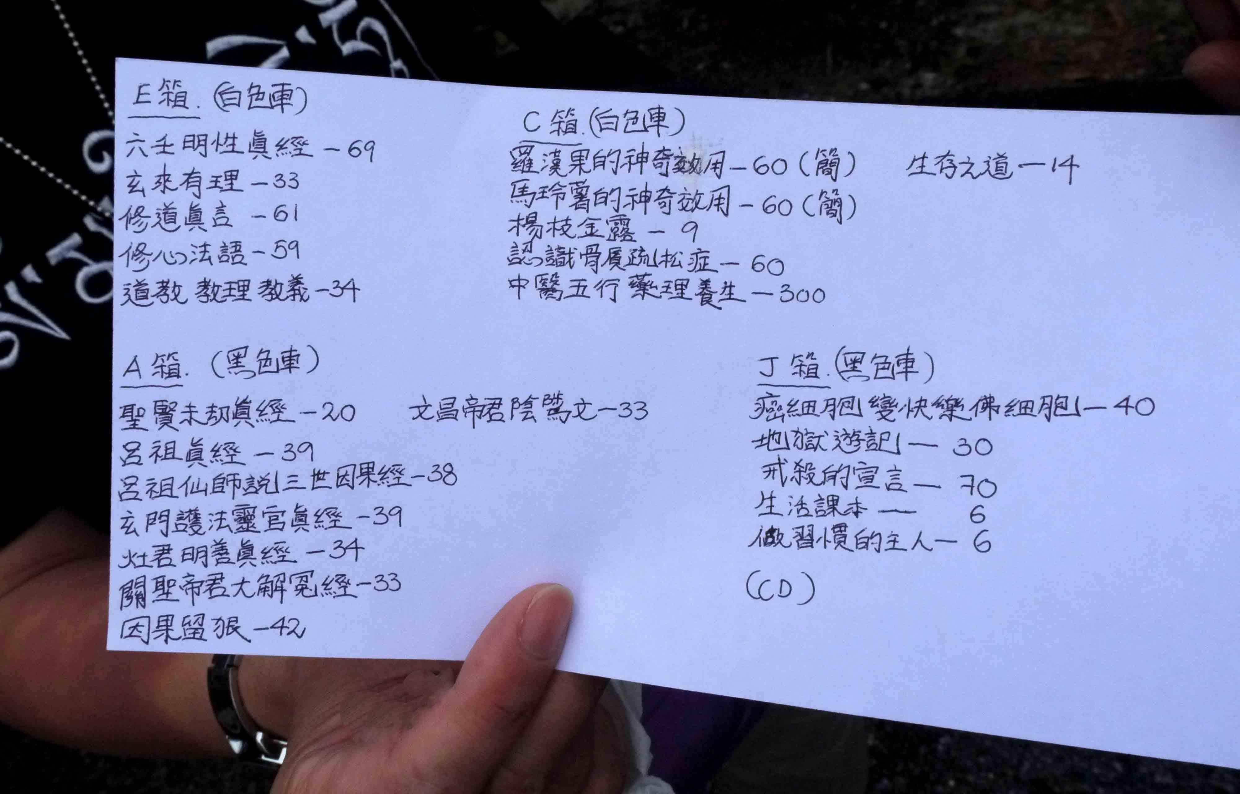 經書一覽。感恩亞倫和太太詩敏之前一晚通宵為我們點算的經書數量。