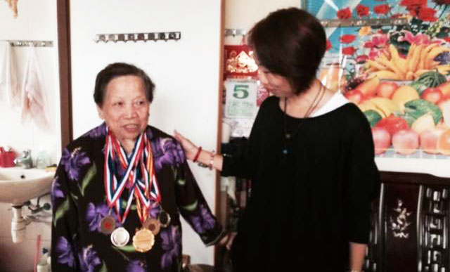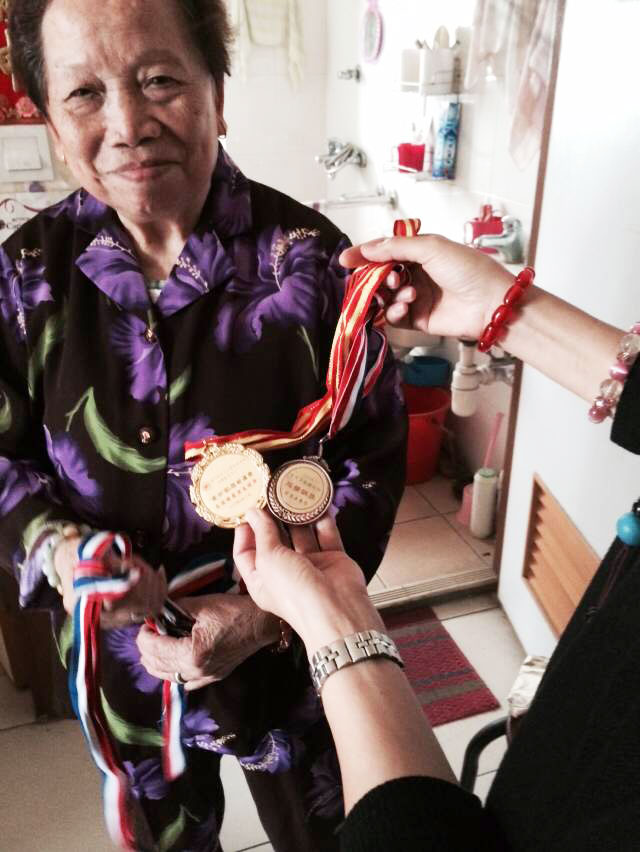 梁婆婆一直積極參與長者中心的義工工作, 師父探望她時,更拿出多年的義工獎牌與我們分享!