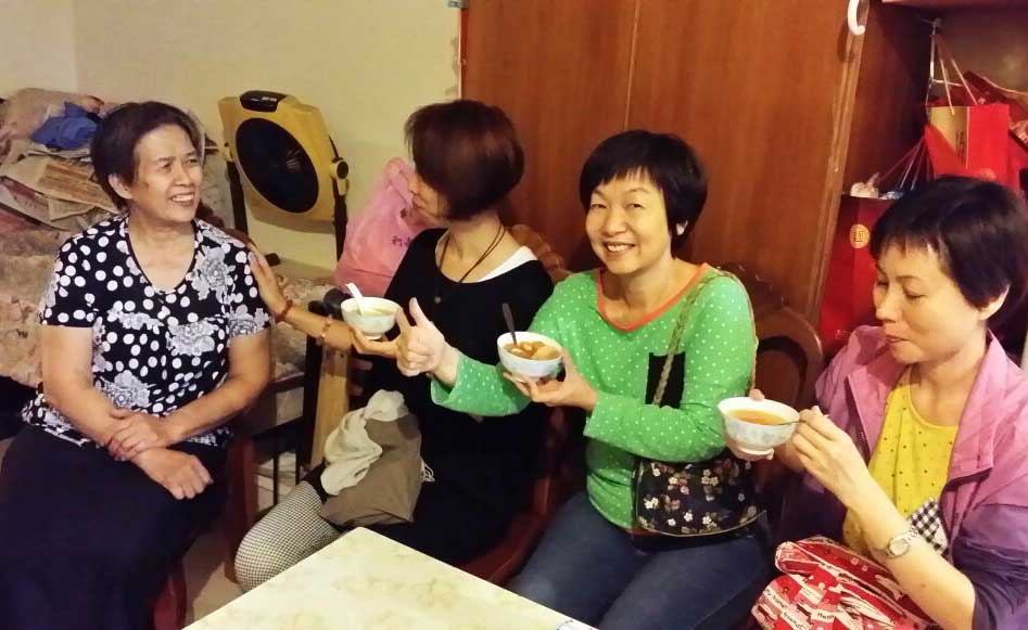 對於 師父的探訪,李婆婆感到很高興,還與 師父分享剛煲好的素湯和炆柚子皮,原來李婆婆也是吃素的!除此之外,也會念經,包括心經、彌勒佛經、地藏經等,現時她還在長者中心當以時薪計的清潔工哩。
