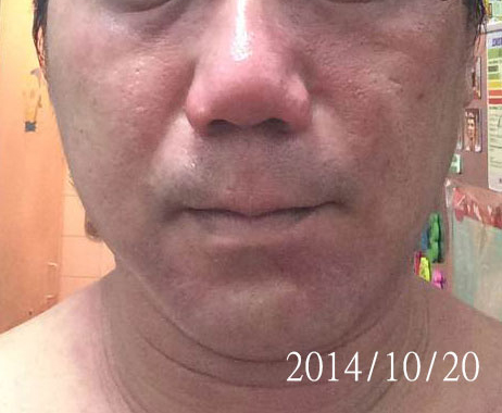 2014年10月15日下午5時,在Johnny求醫於 師父不足24小時,病況明顯好轉,開始退腫,Johnny:「昨天(14號)眼只能張開一半,今天能全開了;昨晚明顯少了痕癢,現在面上的黑,是醫生開的沖涼藥所引致的 。感恩 祖師爺!感恩 師父!樣貌開始變回正常的自己!」
