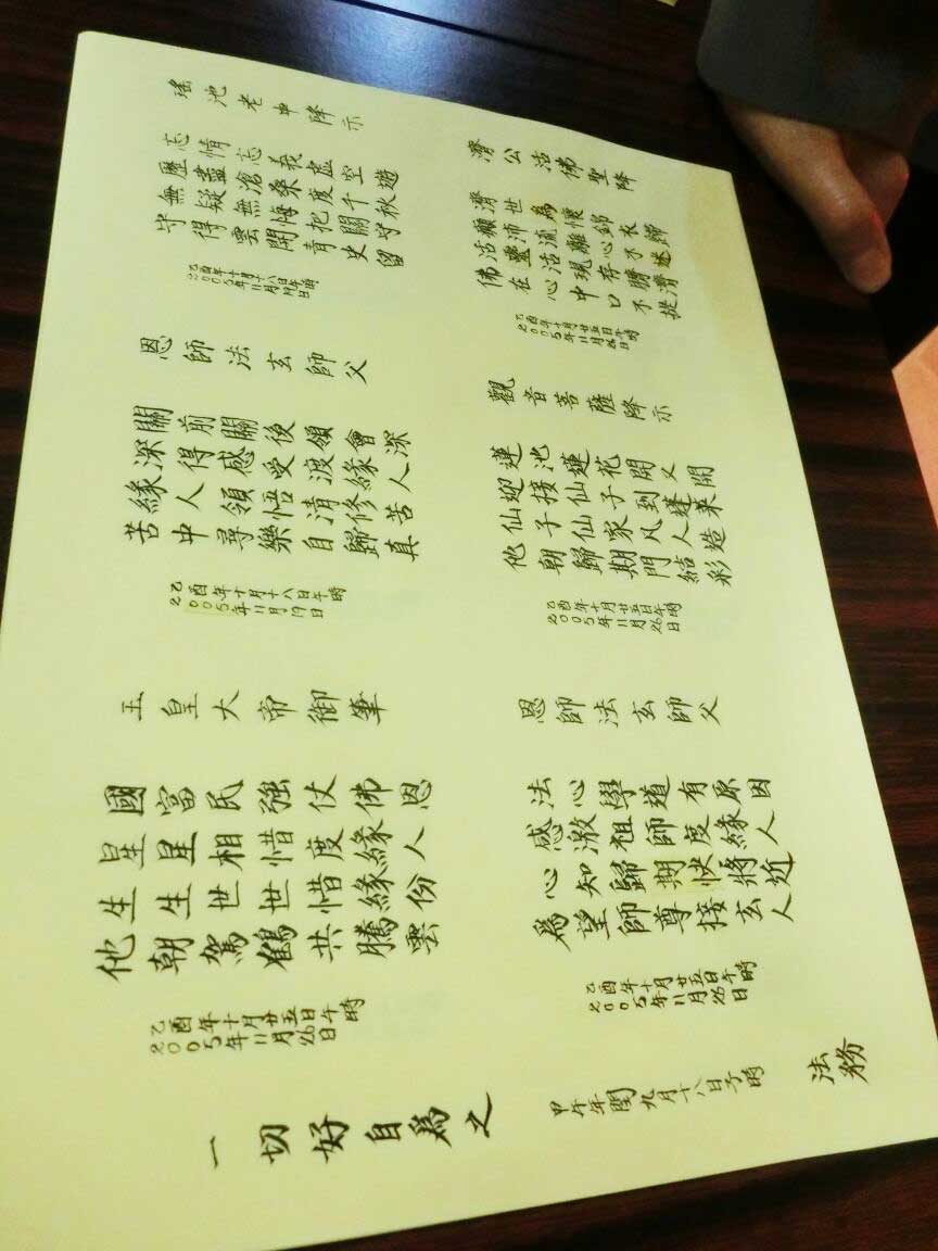 法門生活點滴 感恩 師父! 2014-11-25 尚無留言 2014/11/22 聚盈軒 請神 20,028 total views, 12 views today 相關文章: 在澳總壇及港分館的請神 2014.8.24 聚盈軒 6,477 total views, 4&nb […]... 前天的請神之後 2014.10.8 聚盈軒 6,492 total views, &nbs […]... 請神 2015.8.14 玄真閣 感恩 祖師爺、伏英老師公、諸佛菩薩對我們的加持和庇佑! […]... 伏英老師公先天知命六壬仙道壇六壬祖師爺法玄師父聚盈軒請神 Next Post Previous Post Others Post...