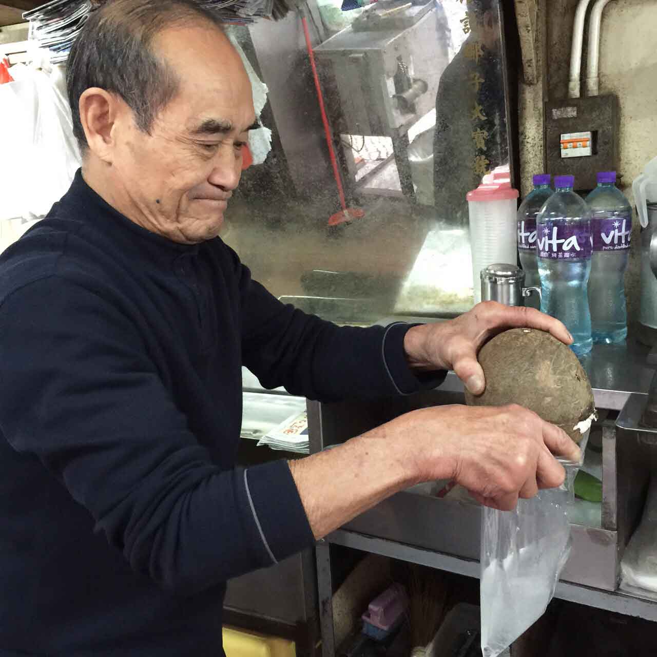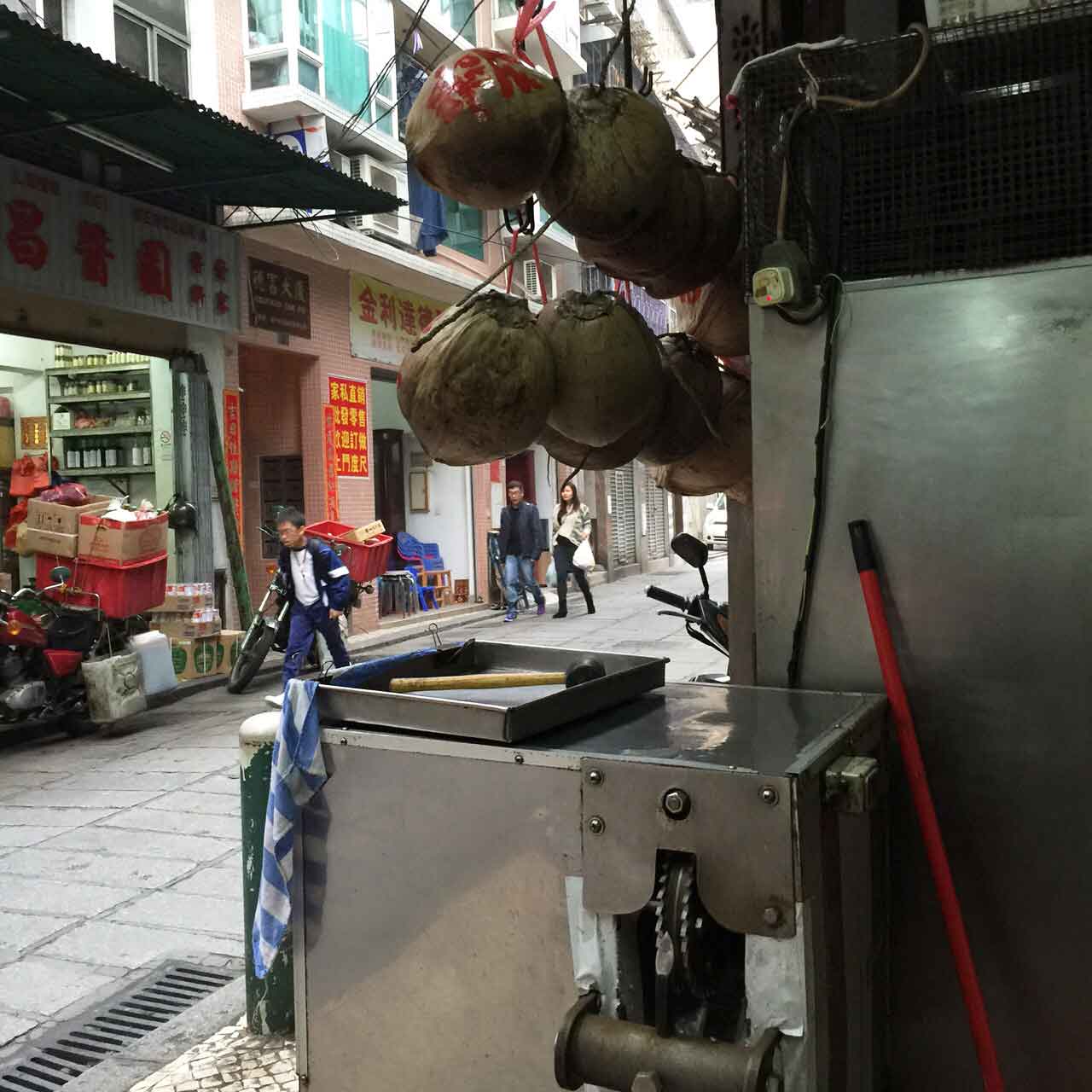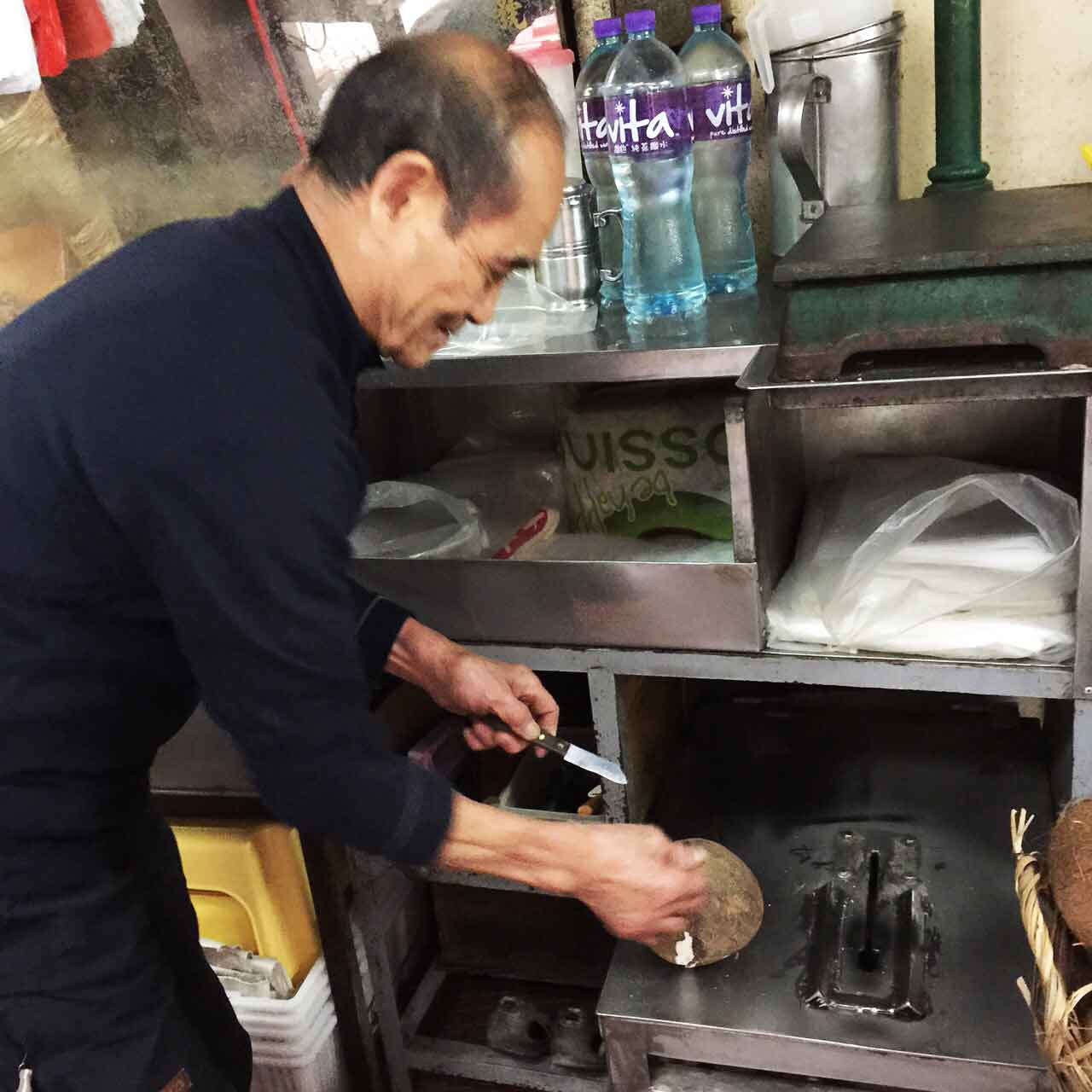 這是一間位於澳門人通稱「爛鬼樓」小街的售賣原隻椰子老鋪: