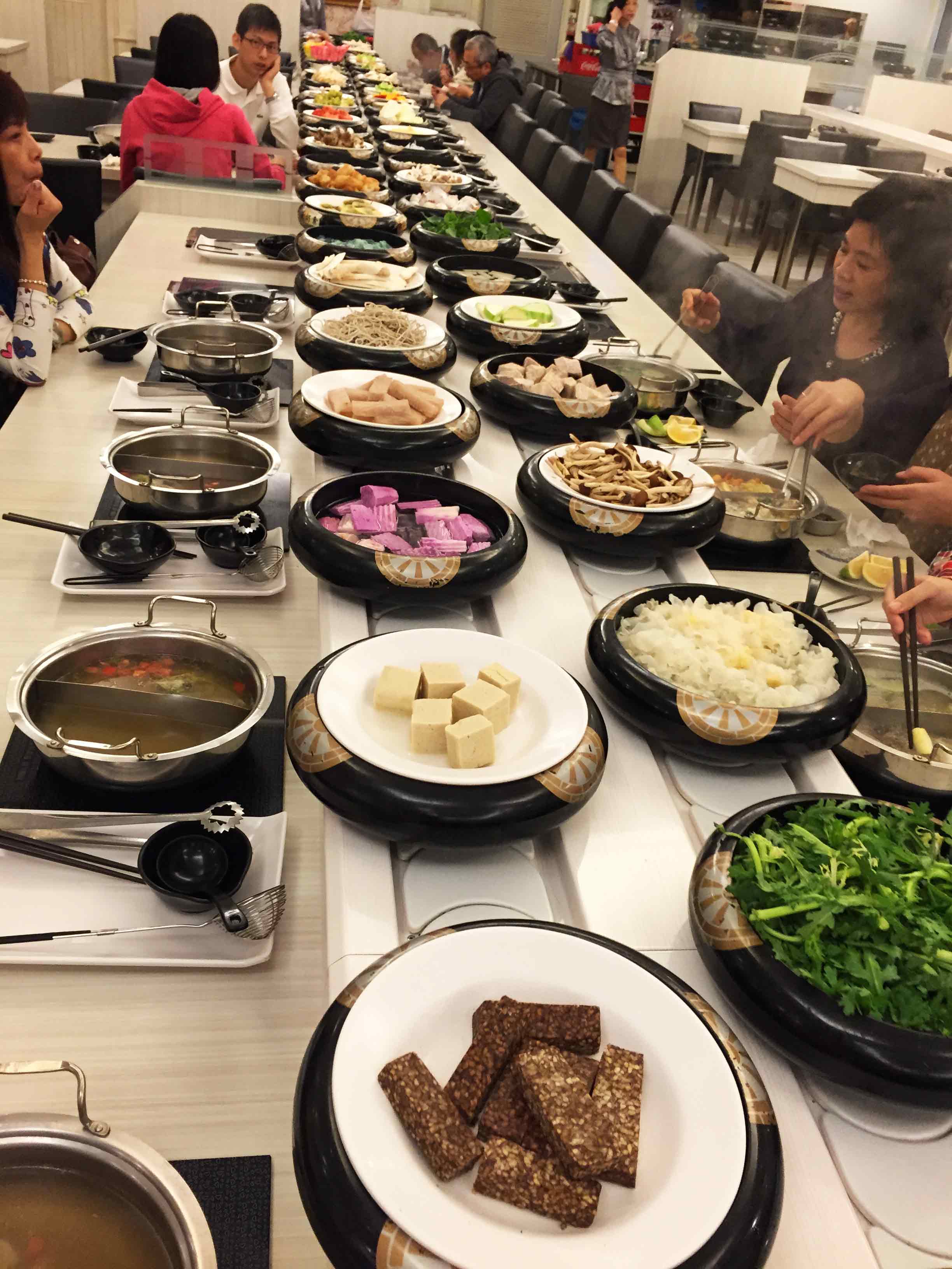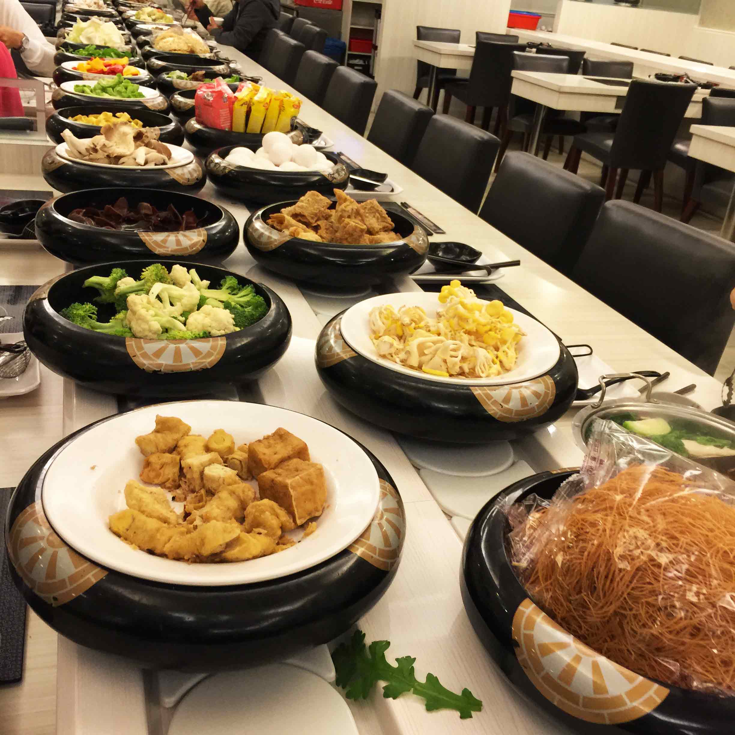 超過40款素食火鍋配料、14款不同口味的湯底選擇、10多款醬料、任吃的甜品、水果、白飯、飲料,折合港幣每位$80!加一後亦只$88/位!絕對驚喜!而且食材新鮮,推介檸檬香茅湯底配合蘿蔔泥、香茅醬、香椿醬、照燒醬等混合醬料,![]()